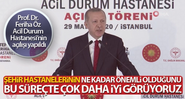 Korona virüs salgınında hayatını kaybeden tüm hocalar ve vatandaşlar ile Prof. Dr. Feriha Öz’e rahmet dileyerek sözlerine başlayan Cumhurbaşkanı Erdoğan, “Biz kadirşinas bir milletiz. Ülkemize hizmet eden, bu uğurda fedakarlık gösteren hiç kimseyi unutmayız. Bunun için buraya Prof. Dr. Feriha Öz, Yeşilköy’de inşa edilen hastaneye de Prof. Dr. Murat Dilmener’in ismini verdik. Böylece ömürlerini insan sağlığına adayan, salgın döneminde de yine büyük bir gayretle çalışırken son nefeslerini teslim eden hocalarımızın isimlerini ebediyete kazıdık. Aynı şekilde Hadımköy’de restore edilen hastaneye de Sultan 2. Abdülhamid’in askerlerimiz için inşa ettiği, burayı da şöyle tepeden tırnağa restore etmek suretiyle Dr. İsmail Niyazi Kurtulmuş’un ismini vererek, bu sağlık, eğitim ve hayır gönüllüsü büyüğümüze vefamızı gösterdik. Dünyada pek çok ülkede salgın sebebiyle sağlık sisteminin çöktüğü bir dönemde Türkiye, hem mevcut imkanlarını en iyi şekilde kullanarak hem de işte buradaki gibi yeni imkanlar üreterek farklı bir konuma gelmiştir. Kapasitesinin tamamı gerektiğinde, yoğun bakım altyapısına sahip olan bu hastanemizi, iki ay gibi kısa bir sürede tamamladık. Tabii bir başka özelliği var. Hemen pist burada. Aynısı Murat Dilmener’de de var. Malum Yeşilköy Havalimanı. Burası da daha önce askeri havaalanıydı. Uluslararası herhangi bir hasta buraya gelmek istediğinde rahatlıkla pist var, bu piste inecek ve buradan yürüme mesafesinde hemen hastaneye gelecek. Aynısı Yeşilköy için geçerli. Orada da yine havaalanına gelecek ve oradan yürüme mesafesinde hastaneye inecek. Tedavi bitti, yine hemen uçağıyla gitmesi gereken yere gidecek. İster ulusal, ister uluslararası hepsine hazır. Niye? Dedik ya sağlıkta sağlık turizmini hedefliyoruz ve bunu başaracağız. Şayet salgın acil bir ihtiyaç göstermiş olsaydı bu süreyi belki daha da kısaltabilirdik” dedi.