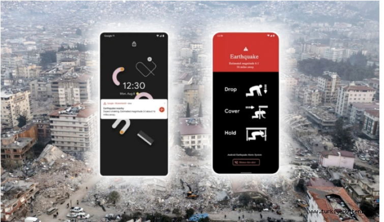 4.5 veya daha büyük bir deprem tespit edildiğinde, Android sistemi bir uyarı gönderiyor.
