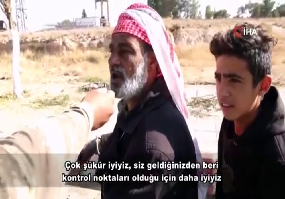 Milli Savunma Bakanlığının sosyal medya hesabı üzerinden yaptığı paylaşımda, Tel Abyad’da yaşayan bir vatandaşın, "Çok şükür iyiyiz, siz geldiğinizden beri kontrol noktaları olduğu için daha iyiyiz" ifadeleri dikkat çekti. Bakanlıktan yapılan paylaşımda, "Kahraman Mehmetçiğimiz Barış Pınarı Harekât bölgesindeki Tel Abyad’da halkın güvenliği için yol kontrollerine devam ediyor. Suriyeli kardeşimiz: ’Çok şükür iyiyiz, siz geldiğinizden beri kontrol noktaları olduğu için daha iyiyiz’ diyerek teşekkür etti" ifadeleri kullanıldı.
