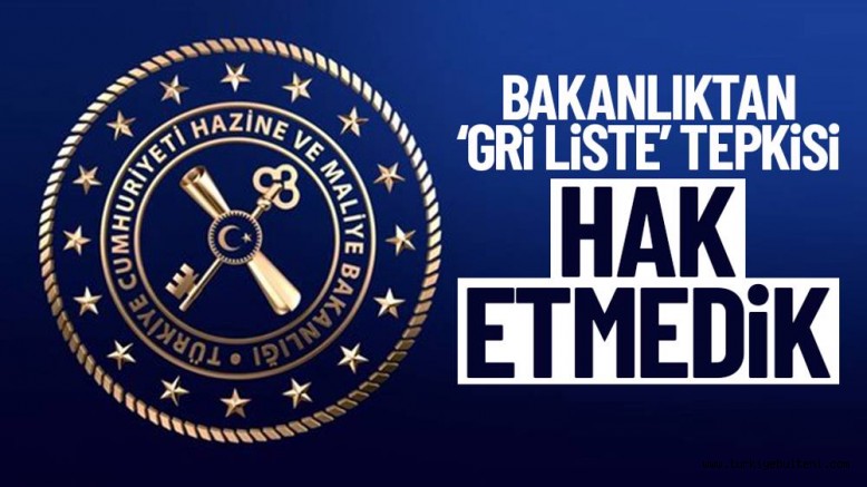 Hazine ve Maliye Bakanlığı, Mali Eylem Görev Gücü (Financial Action Task Force – FATF) raporunda Türkiye'nin gri listeye alınmasıyla ilgili, “Hak edilmeyen bir sonuçtur” açıklamasında bulundu.