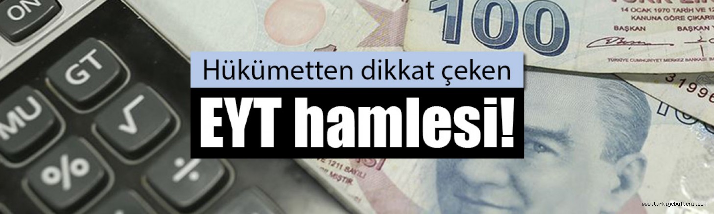 Hükümetin gündemine gelen bir başka konu ise emeklilikte yaşa takılanlar (EYT). Uzun zamandır kamuoyunda tartışılan EYT ile ilgili bir etki analizi ve maliyet hesabı çalışması başlatıldığı öğrenilmişti. Prim gün sayısını doldurmasına rağmen, yaşını doldurmadığı için emekliliği hak edemeyenlerle ilgili yeni bir "süre düzenlemesi" yapılmasının planlandığı belirtilmişti. Emekli olmak için yaş kriterini bekleyenlere yönelik, bekleme süresinin 2 veya 3 yıl geriye çekilmesi formülünün tartışıldığı kaydedilmişti. Bu formülün hayata geçmesi durumunda, EYT'li bir kişi, örneğin emekli olmak için 55 yaşını bekliyorsa, bu süre 2 veya üç yıl geri çekilecek, 55 yerine 52 yaşında emekliliği hak edecek. Bu konuda ne yapılabileceğine, maliyetlere bakıldığı aktarılmıştı. Hazırlanan öneri Cumhurbaşkanı Erdoğan'a sunulacağı, son kararı da yine O'nun vereceği dile getirilmişti. AK Parti kaynakları "Bekleme süresinin geriye çekilmesi ile önemli sayıda bir grubun emekli olacağı tahmin ediliyor" demişti.