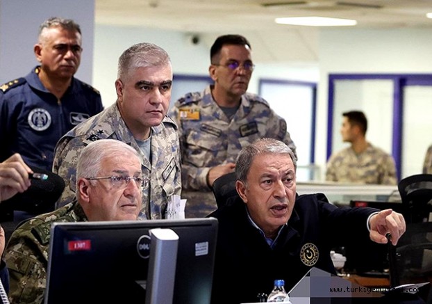 Irak ve Suriye'nin kuzeyindeki terör hedeflerinin tam isabetle vurulduğu Pençe Kılıç Harekatı'nı, Milli Savunma Bakanı Hulusi Akar, beraberindeki Türk Silahlı Kuvvetleri (TSK) komuta kademesi ile Hava Kuvvetleri Harekat Merkezi'nden sevk ve idare etti.
