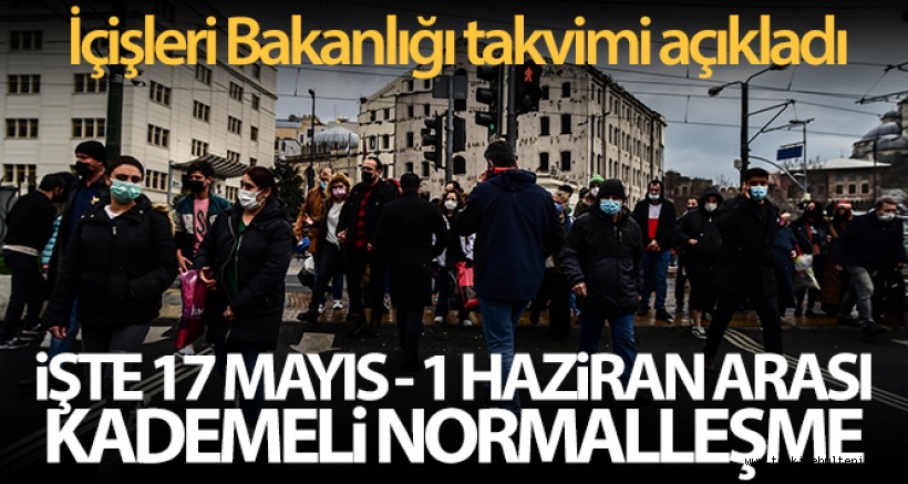 İçişleri Bakanlığınca 81 il valiliğine gönderilen "Kademeli Normalleşme Tedbirleri" konulu genelgeye göre hafta içi 21.00-05.00 saatleri arasında sokağa çıkma kısıtlaması uygulanacak. Kısıtlama, hafta sonu ise cuma günleri saat 21.00'den başlayıp cumartesi ve pazar günlerinin tamamını kapsayarak pazartesi saat 05.00'te tamamlanacak şekilde uygulanacak.