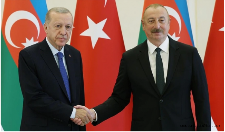 Türkiye Cumhuriyeti'nin Erdoğan'ın bilge liderliğinde ikinci yüzyılına girdiğini hatırlatan Aliyev, kardeş ülke Türkiye'nin kendisi için belirlediği tüm amaç ve hedeflere ulaşmasını, yeni başarılara ve zaferlere imza atmasını arzu ettiklerini vurguladı.