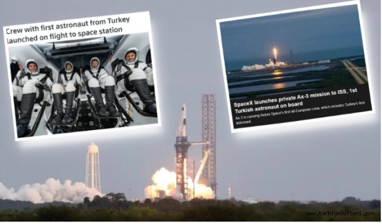 İngiltere merkezli Reuters haber ajansı, "Türkiye'nin ilk astronotunun dahil olduğu mürettebat uzay istasyonuna uçtu" diye yazdı.