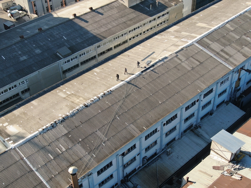Bahçelievler 29 Ekim Caddesi’nde bulunan 4 katlı iş yerinin çatısını onarmak için çıkan 3 kişinin hiçbir güvenlik önlemi almayarak canlarını hiçe saymaları pes dedirtti. İşçiler saatlerce çatıda güvenlik önlemi almadan çalışmaya devam etti. İşçilerden birisi çatının en uç kısmına yaklaşarak boya yaptı. Diğer işçilerin ise çatının bakım onarım çalışmalarına devam etmeleri havadan çekilen görüntülere yansıdı.