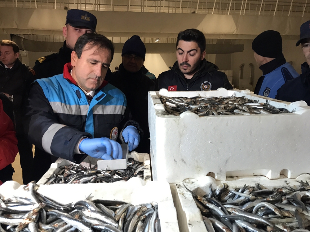 Denizdeki denetimlerin ardından ekipleri Beylikdüzü Gürpınar Balık Haline şok baskın düzenledi. Balıkları kasalarla araçlardan indirirken inceleme yapan ekipler, balıkların boylarını ölçtü. Halde yapılan balık boyu incelemelerin ise yönetmeliğe aykırı şekilde boyu 13 santimetreden küçük olan kasa kasa balığa yetkililere tarafından el konuldu. El konulan balıkların etrafı şerit çekerek kapatılırken, üzerlerine ise “1380 sayılı Su Ürünleri Kanunu kapsamında el konulmuştur” yazısı konuldu.
