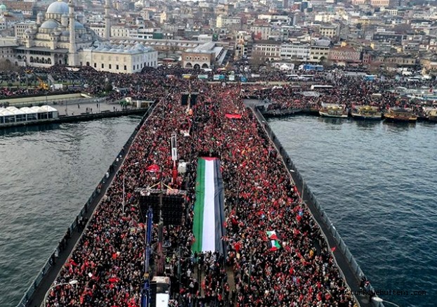 Türkiye'deki 29 Sivil Toplum Kuruluşunun (STK) bir araya gelerek oluşturduğu Milli İrade Platformu, 1 Ocak'ta saat 08:30 sularında (bugün) Galata Köprüsü'nde, "Şehitlerimize Rahmet, Filistin'e Destek, İsrail'e Lanet" sloganıyla yürüyüşe başladı.