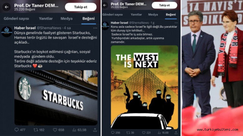 İsrail'in dünyanın gözü önünde Filistinlilere yönelik katliamına tepkiler yağarken İYİ Parti Genel Başkan Yardımcısı Taner Demirer'in sosyal medyada beğendiği gönderiler gündem oldu. Demirer'in Filistin-İsrail çatışmasında açıkça terör devletini destekleyen gönderileri beğendiği görüldü. Ayrıca Demirer'in kendi sosyal medya hesabından yaptığı paylaşımda da, "Türkiye'ye sakın Filistinlileri almayın. Mısır gibi yapın" sözleriyle mülteciler üzerinden algı operasyonuna girişti. Akşener'in Yardımcısı Demirer'in bu çıkışları büyük tepki çekti.