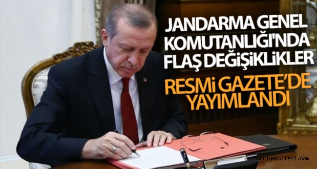 Cumhurbaşkanı Recep Tayyip Erdoğan imzasıyla açıklanan kararlar ile Jandarma Genel Komutanlığında 4 Tuğgeneral ve 4 jandarma albay emekliye sevk edildi. 5 general bir üst rütbeye terfi etti.