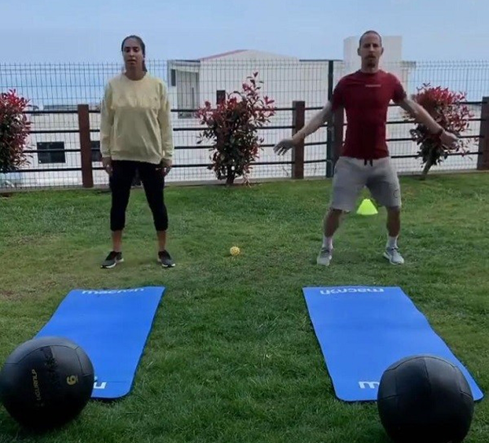 Korona virüs salgını nedeniyle Saper Lig’e verilen arada karantina günlerini Trabzon’daki evlerinde geçiren Trabzonspor’un tecrübeli futbolcusu Joao Pereira, Süper Lig her an başlayacakmış gibi kendini hazır tutmaya çalışıyor. Antrenmanlarda Pereira’nın en büyük yardımcısı ise eşi Natacha Esmail oldu. Tecrübeli oyuncu ile birlikte hareketleri yapan ve zaman zaman yardımcı olan Esmail, zor günlerde başaralı oyuncunun en büyük destekçisi.