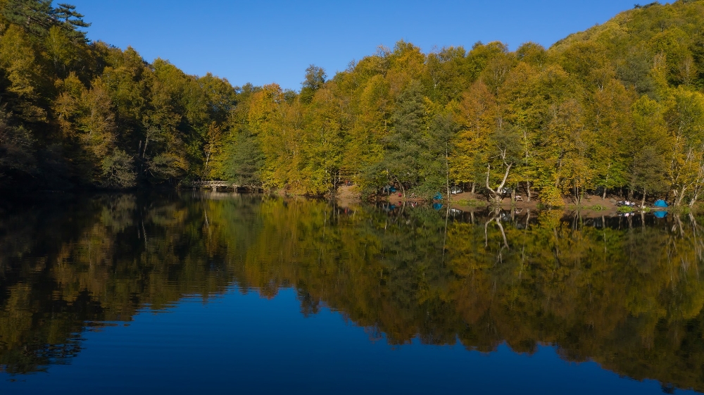 Bolu’nun doğal güzellikleriyle ünlü Yedigöller Milli Parkı, sonbahar mevsimin tüm renklerini barındırıyor. Ankara ve İstanbul gibi iki metropol kent arasında yer alan, Bolu merkeze 45 kilometre uzaklıkta bulunan Yedigöller’de sonbaharda yaşanan renk cümbüşü, doğayla iç içe zaman geçirmek isteyen tatilcileri bölgeye çekiyor. Bin 636 hektar büyüklüğündeki Yedigöller havzası 1965 yılında milli park olarak koruma altına alındı. Havza, kayan kütlelerin vadilerin önlerini kapatması sonucu oluşan yüzeysel ve yer altı akışlarıyla birbirine bağlı, kuzeyden güneye bin 500 metre mesafede sıralanmış 7 gölden oluşuyor. Milli Park içindeki göller, aralarında 100 metre yükselti farkı bulunan ve ortalama 780 metre yükseklikte olan iki plato üzerinde bulunuyor. Yedigöller Milli Parkı’nın güneyinde 1380 metre rakımlı Kapankaya Tepesi’ndeki seyir yerine çıkarak gölleri ve vadideki eşsiz manzarayı görmek mümkün. 236 adet bitki türünü içeren Yedigöller Milli Parkı, bu haliyle tam bir saklı cenneti andırıyor. Yedigöller’de bulunan Orman Bakanlığına ait bungalov evler konaklamak için ideal olarak görülüyor. Ayrıca doğa aşıkları için Milli Park’ta 1 hektarlık çadır ve karavan alanı da bulunuyor.