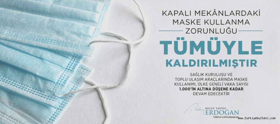 ''KAPALI MEKANLARDAKİ MASKE KULLANMA ZORUNLULUĞU TÜMÜYLE KALDIRILDI''