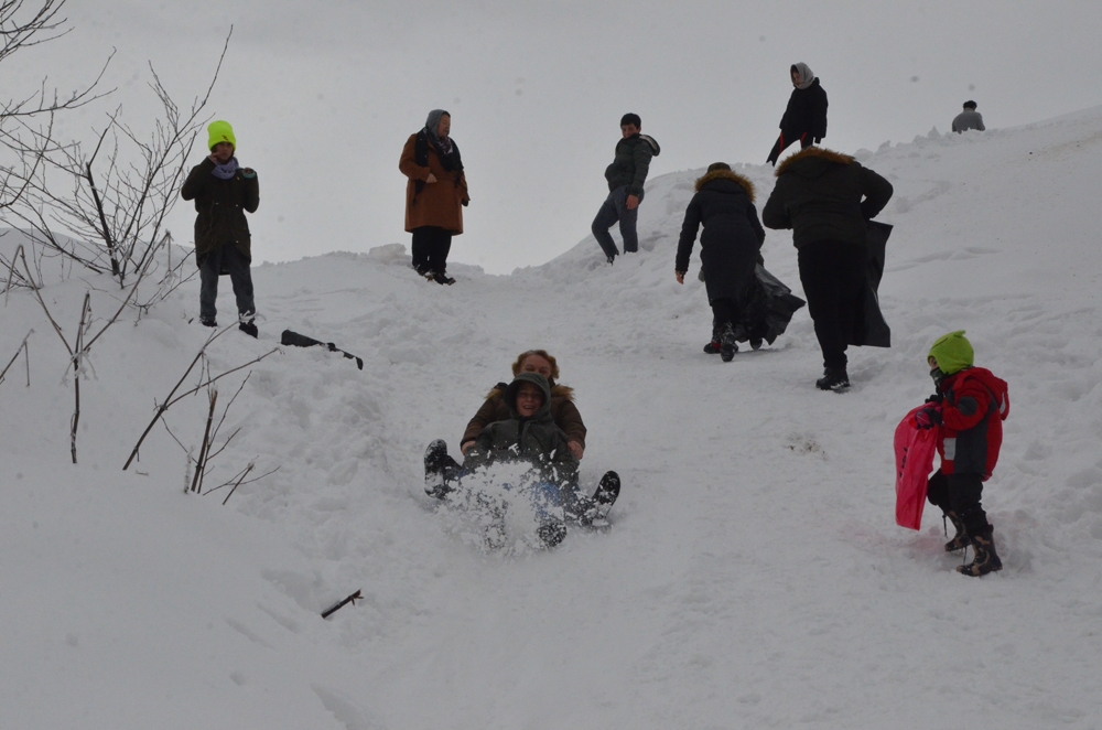 Çocuklar ve yetişkinler, kar üzerinde kaymanın ve kartopu oynamanın doyasıya tadını çıkarttı.