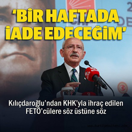 Kılıçdaroğlu, "KHK ile görevlerine son verilenler hiç kimse merak etmesin. Yargı kararları yoksa 1 hafta içinde tamamını görevlere iade edeceğiz. Hiç kimsenin mağdur olmasını istemiyoruz" diye konuştu.