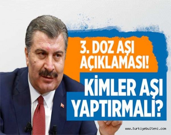 Şu an için BioNTech aşılarında 3. doz aşıyı gerektiren bir durum olmadığını vurgulayan Bakan Koca,"İnaktif aşı olanların 3. doz aşılarını yaptırmalarını ısrarla öneriyoruz." dedi.