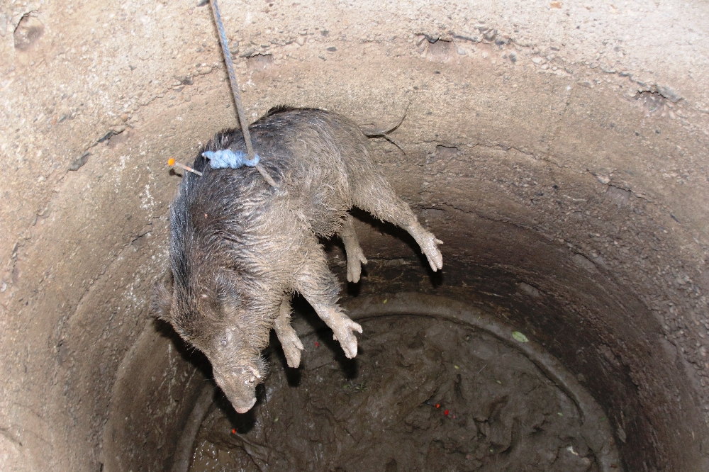Akşam saatlerinde yaklaşık bir saat boyunca domuzu çıkarmaya çalışan ekipler, havanın kararması nedeniyle müdahaleyi sabah saatlerine erteledi. Bugün erken saatlerinde bölgeye hareket eden Bodrum Belediyesi Veteriner İşleri Müdürlüğü görevlileri bölgeye getirdikleri vinç ve kuyuya sarkıttıkları halat yardımıyla yaban domuzunu dışarı çekmeyi başardı. Ekipler, müdahaleden önce domuza çok sayıda sakinleştirici iğne yapmak durumunda kaldı. Müdahale yaklaşık 6 saat boyunca devam etti.