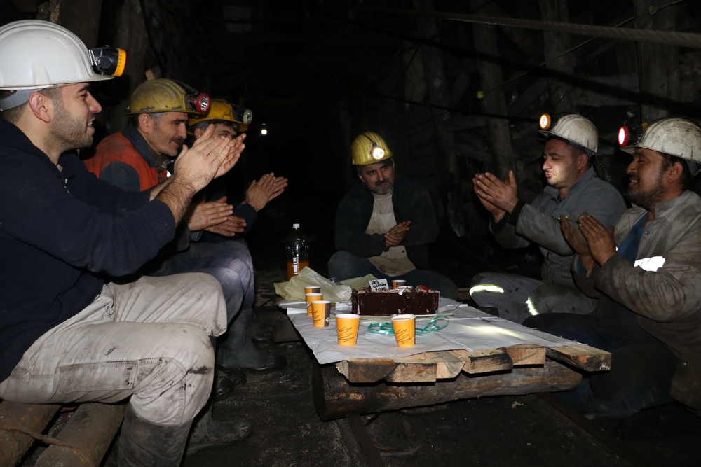 Gelik beldesinde faaliyet gösteren Arılar Madencilik Şirketi’nde çalışan maden işçileri yeni yıla yerin 300 metrelerce altında girdi. Yer altında kömür kazan maden işçileri, saatler 23.59’u gösterdiğinde ise tahkimat ve bakım yaptıkları madende çalışmalarını bıraktı. Üretim yapılmayan maden ocağında bakım ve üretim hazırlığı yaptıklarını anlatan maden işçileri, yeni yıla pasta keserek girdi. İşçiler yeni yılın ilk dakikalarında birbirlerini kutladılar. İşçiler yeni yıldan ise kazasız belasız üretim istedi.