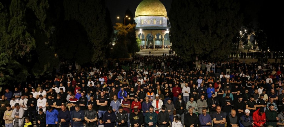 Binlerce Filistinli ve yabancı Müslüman, bayram namazı için sabahın erken saatlerinde Mescid-i Aksa'ya akın etti.