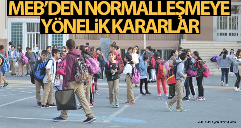 “Ülkemiz genelinde Covid-19 salgın tedbirleri çerçevesindeki kademeli normalleşme kapsamında 17 Mayıs Pazartesi gününden itibaren okul öncesi eğitim kurumları, özel gereksinimli öğrencilerimizin özel eğitim okul ve sınıfları, özel eğitim ve rehabilitasyon merkezleri ile 8 ve 12'nci sınıfların destekleme ve yetiştirme kursları/takviye kurslarında yüz yüze eğitime geçilecektir. Diğer kademelerdeki resmî ve özel, örgün ve yaygın tüm eğitim ve öğretim kurumlarında 1 Haziran Salı gününe kadar uzaktan eğitime devam edilecektir.