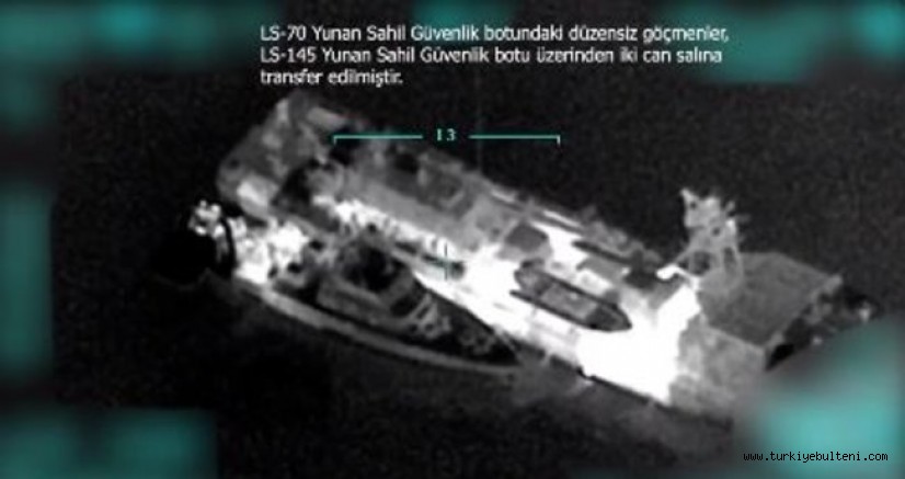 Bakanlık'an konuya ilişkin yapılan açıklamada; "Ege Denizi'ndeki Sarnıç Burnu'nun kuzeyinde, 18 Temmuz'da Yunanistan'a ait sahil güvenlik botları tarafından 2 adet can salına transfer edilen düzensiz göçmenlerin Türk kara sularına itildiği Deniz Kuvvetlerimize ait İHA ile tespit edilmiştir." denildi.