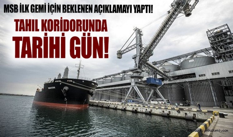 Milli Savunma Bakanlığı, tahıl koridoru için beklenen açıklamayı yaptı. MSB, "Ukrayna limanlarından ilk gemi bugün saat 08.30’da hareket edecektir." dedi.