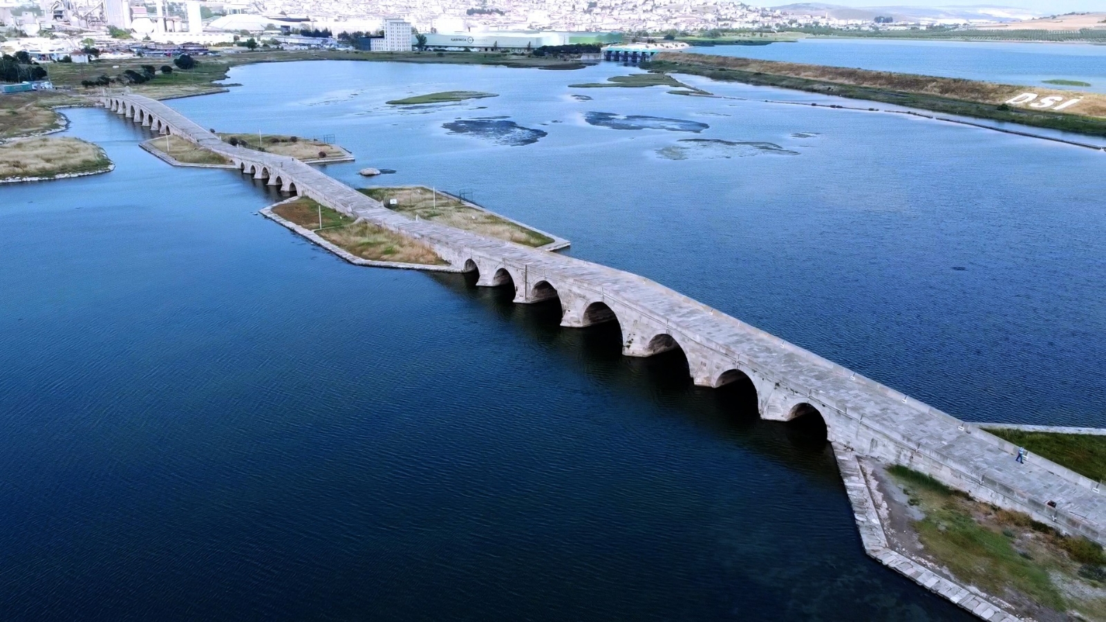 Kanuni Sultan Süleyman Köprüsü’nde restorasyon işlemlerine ivedilikle başlanması çağrısında bulunan Büyükçekmece Belediye Başkanı Dr. Hasan Akgün, “Kanuni Sultan Süleyman ismi de zaman zaman bu köprüye verilmiştir ama tüm halk bunu Mimar Sinan Köprüsü olarak bilir. Mimar Sinan Köprüsü’nün özelliği şu; yaklaşık 700 metre uzunluğunda, 7 metre 17 santim genişliğinde. Daha düne kadar Trakya’ya giden buradan tankların, topların üzerinden geçtiği bir köprüydü. 1990’da Büyükçekmece Belediyesi olarak biz burasını trafiğe kapattık. Ondan önce bütün Trakya’nın yükünü çekiyordu. Bu kadar muhteşem bir köprü bugüne kadar ayakta kalmışsa önce Mimar Sinan’ın buradaki dahiliği, büyüklüğü, büyük mimarlığı ortaya çıkıyor. İkincisi bakımı zaman zaman yapılmıştı. 1989 yılında ben de taraf olmuş ve o günkü Kültür Bakanlığı’nı da devreye sokarak tamir, onarım bakımını yaptırmıştık. Şimdi ileride birazdan göreceksiniz kemerin birisi tam ortadan yarıldı. Bu çok tehlikeli. Komple çökebilir. Ufak bir depremde çökebilir ve birçok yerde deformasyonlar başladı. Bu deforme olan yerler daha önce 1989’larda 1980’lerde yapılan restorasyonun dışında kalan yerler. O zamanlarda o kısımlara da yapılsaydı Mimar Sinan Köprüsünde bu tehlike çanları çalmayacaktı. İpek yolu üzerinde bulunan Türkiye’ye Doğudan Batıya, Avrupa’ya bağlayan ilk en önemli geçitlerimizden olan Mimar Sinan Köprüsü bugün tehlike çanları çalıyor. Vakıflar Genel Müdürümüze, Karayolları Genel Müdürlüğümüze çok teşekkür ediyorum. Yazıyla kendilerine bildirdik. Son yapmış olduğum telefon görüşmelerinde kısa zamanda ihaleye çıkacağını ve Mimar Sinan’ın eserlerinden sadece Büyükçekmece’deki bu muhteşem eserinde imzası vardır. Eserleri arasında şaheserim dediği eserlerden biridir. Kısa zamanda ihaleye çıkacağını ve köprünün de kurtulacağını ifade ettiler. Bunun takipçisi olmak zorundayız. Çünkü deprem kapımızda. Biraz sonra sizinle konuşurken karşılaşmamamız veya ne zaman karışılacağımız bilinmiyor. En büyük endişem küçük depremde de köprünün deforme olan kemerleri yakılabilecek. Kemer yıkıldığı zaman köprü yıkıldı. Kısa zamanda Karayolları ve Vakıflar bu işi çözecek diye inanıyorum. Önemli olan ihalenin yapılması.”