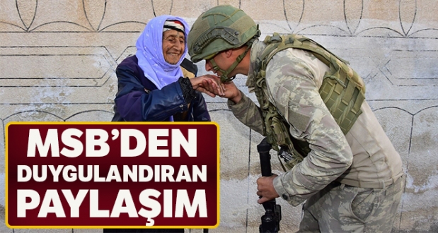 Milli Savunma Bakanlığının sosyal medya hesabından, "11 Kasım 2019 Rasulayn. Dünyanın hiçbir ordusunda yüreği seninkinden daha temiz, daha sağlam bir askere rast gelinmemiştir" notuyla paylaşılan fotoğrafta Barış Pınarı Harekatı’nda terörden arındırılan Rasulayn bölgesinde görev yapan Mehmetçik yaşlı bir kadının elini öpüyor.