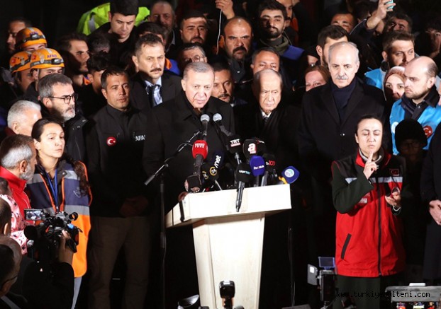 Burada benim bir ricam var; kentsel dönüşüm noktasında vatandaşlarımız da bize bu konuda yardımcı olsun. Süratle biz inşaatlarımıza başlayalım. Hukuki süreçleri hızlandırma yanında kimi siyasi, kimi ticari kaygılarla kentsel dönüşüm planlarını engelleyen ve geciktiren herkesi milletimizle paylaşacağız. İskenderun'daki kentsel dönüşüm çalışmalarını kampanyalarla, davalarla engelleyenlerin bugün yol açtığı felaket herkese ibret teşkil etmelidir.