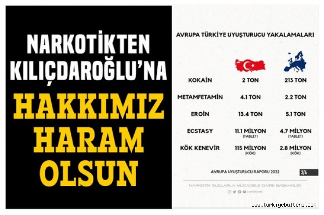 Kılıçdaroğlu'nun uyuşturucu çıkışına bir tepki de Narkotik Suçlarla Mücadele Daire Başkanlığı'ndan geldi. Bu yıl yapılan uyuşturucu operasyonlarından rakamların paylaşıldığı açıklamada, "Uyuşturucu mücadelesinde dünyanın parmak ısırdığı başarıları elde eden narkotik polisleri olarak, tarafımıza atılan dış destekli iftiraları asla kabul etmiyor, hakkımızı helal etmiyoruz." denildi.