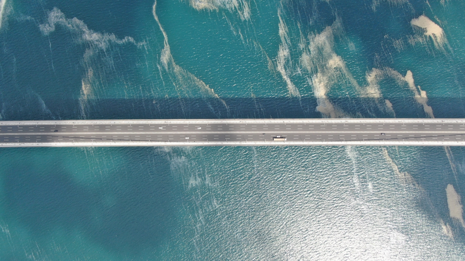 Çevre ve Şehircilik Bakanlığı tarafından başlatılan “Marmara Denizi Eylem Planı” kapsamında mücadelenin sürdüğü deniz salyası, İzmit Körfezi’nde etkisini sürdürüyor. Deniz süpürgeleri ile deniz yüzeyinden temizlenen deniz salyası, son olarak İzmit Körfezi’nin güneyi ile batısını birbirine bağlayan Osmangazi Köprüsü’nün etrafını sardı. Deniz salyası ile birlikte korkutan manzaranın oluştuğu Osmangazi Köprüsü drone ile havadan görüntülendi.