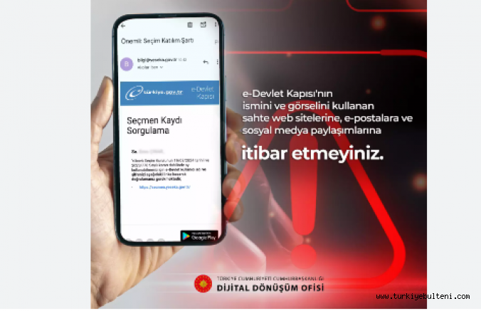 Ofis'ten yapılan açıklamada, sosyal medya platformları veya e-posta hesapları üzerinden e-Devlet Kapısı ismi ve görseli kullanılarak yerel seçimlerle ilgili "oltalama" faaliyetleri yürütüldüğü belirtildi.