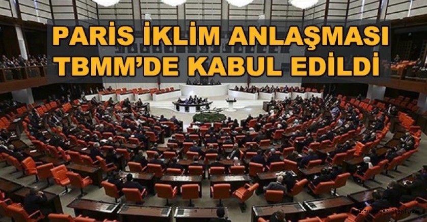 Cumhurbaşkanı Erdoğan, BM'nin 76'ncı Genel Kurulu'nde, "Paris İklim Anlaşması'nı, atılacak yapıcı adımlara uygun şekilde ve ulusal katkı beyanımız çerçevesinde, önümüzdeki ay Meclisimizin onayına sunmayı planlıyoruz." sözleri ile dünyaya seslenmişti. Paris Anlaşmasının Onaylanmasının Uygun Bulunduğuna Dair Kanun Teklifi, TBMM Genel Kurulu'nda tüm partilerin oy birliği ile kabul edildi. Öte yandan Birleşmiş Milletler (BM), Türkiye'nin Paris İklim Anlaşması'nı onaylamasını memnuniyetle karşıladıklarını bildirdi.