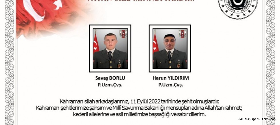 "Pençe-Kilit operasyonu bölgesinde, 11 Eylül 2022 tarihinde, Arama Tarama faaliyeti esnasında bölücü terör örgütleri mensupları ile çıkan çatışmada, P. Uzm. Çvş. Harun Yıldırım ve P. Uzm. Çvş. Savaş Borlu şehit olmuş, 4 kahraman silah arkadaşımız yaralanmıştır.