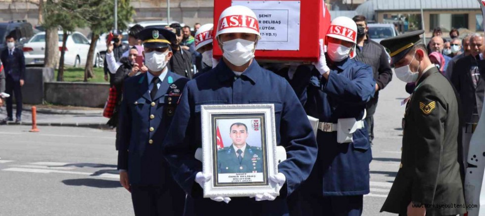 Törende şehit yakınları, tabuta ve Delibaş'ın fotoğrafına sarılarak gözyaşı döktü.