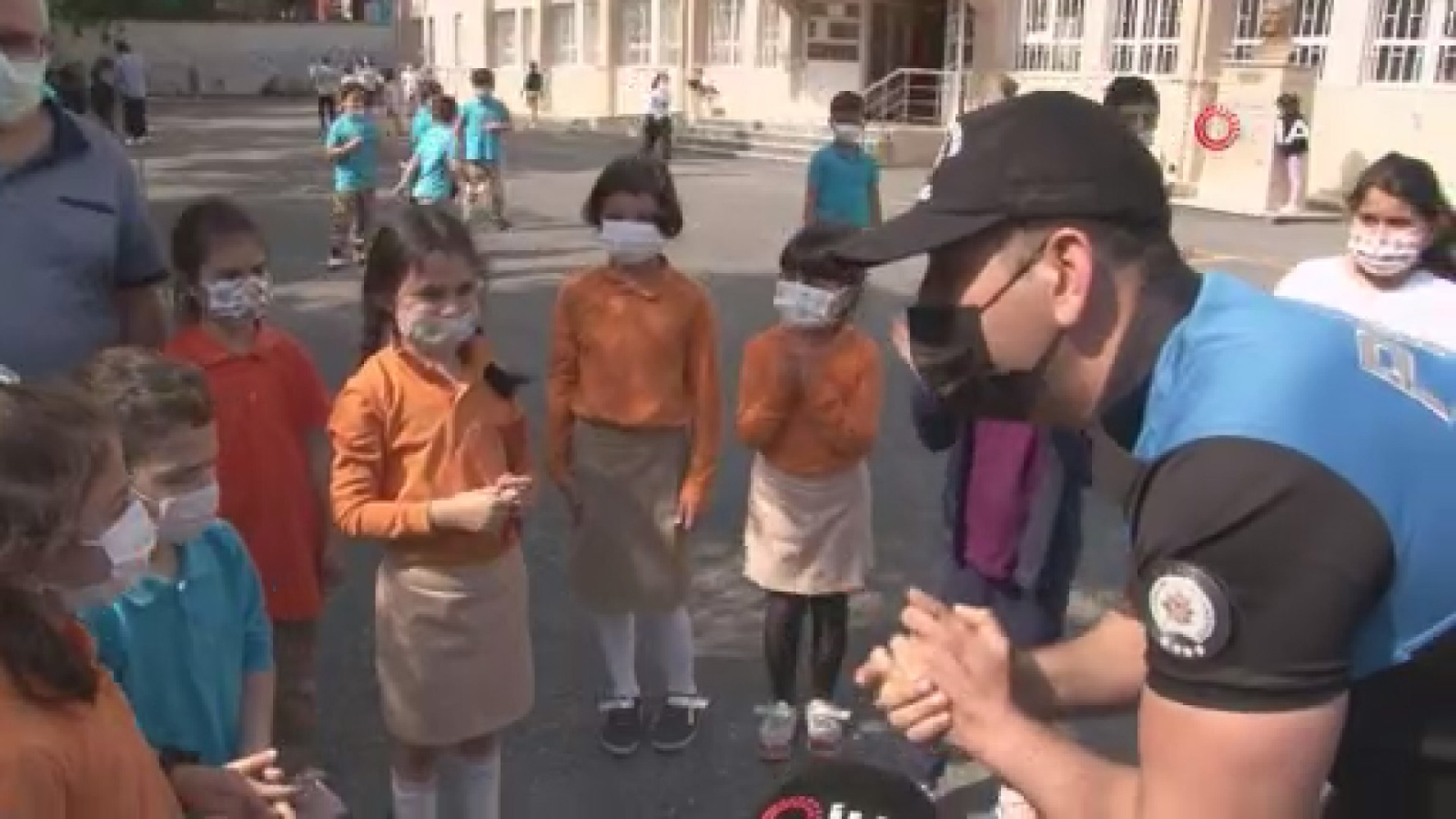 İlk okul ve ana okullu öğrencilerinin ardından orta okul ve lise öğrencileri de yüz yüze eğitime başladı. Sarıyer Poligon Mahallesi’nde bulunan Kazım Karabekir Ortaokulu aileleriyle gelen öğrenciler, okula alındı. Bu sırada polis memurları da öğrenci ve ailelere korona virüs kurallarını hatırlattı. Polisler çocukları ve aileleri "altın kural dediğimiz maske, mesafe ve hijyen üçlüsüne dikkat etmeliyiz" diye uyardı.