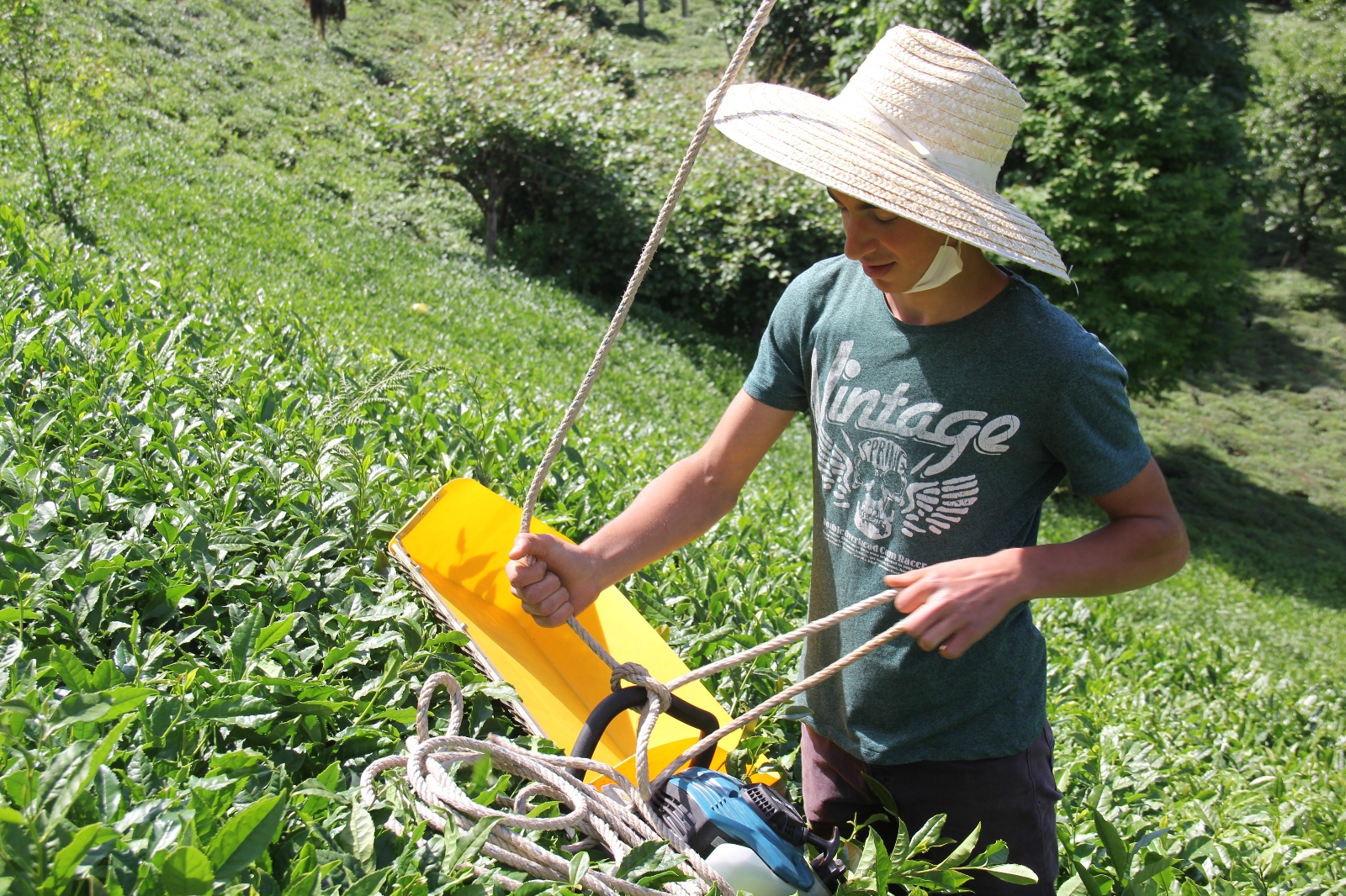 2021 yaş çay sezonunun başlamasıyla Rize’de herkes gibi Ardeşen ilçesinde yaşayan Yeğen ailesi de çay bahçelerine girdi ve çaylarını toplamaya başladı. Çay motoru ile çay toplayan Abdullah Yeğen isimli genç, 3,5 kilogram olan motorun ağırlığını taşımamak için kıvrak zekasını kullanarak bir sistem kurdu. Çay bahçesinin hemen üstünden geçen ve yük taşımaya arayan ilkel teleferiğe bağladığı ipin ucunu metrelerce yükseklikten aşağıya sarkıtarak motora da bağladı. Böylelikle motorun yükünü teleferiğe vermiş oldu. Ardından ise kendisi çay kesme motorunu sağa sola çekerek çay bahçesinde nizami bir şekilde çay toplamaya başladı.