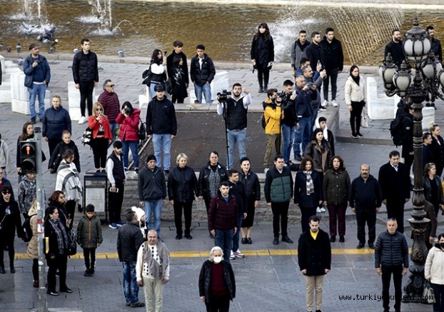 Ankara'nın en işlek noktalarında, hayat Ata'ya duyulan saygının işareti olarak bir dakikalığına durdu.