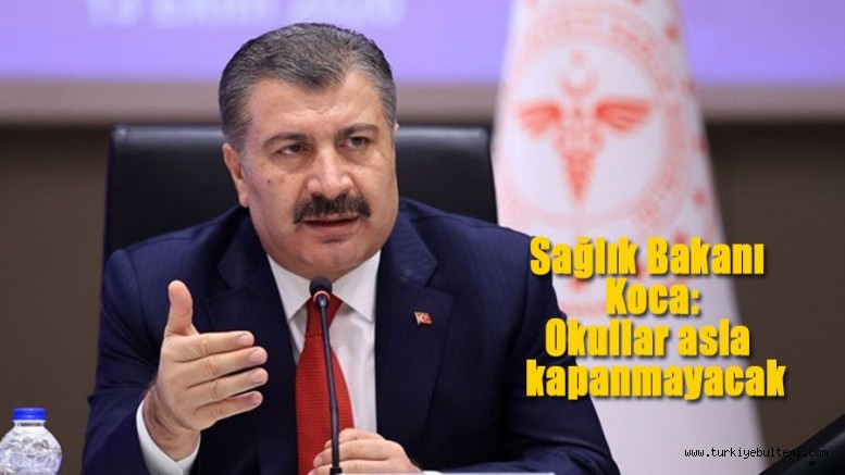 Okulların açık kalmasının öncelik olduğunun altını çizen Bakan Koca, “Okulları bu yıl her halükarda açık tutacağımızı söylemiştim. En son kapanan değil, asla kapanmayan olmalı. Bilim Kurulu olarak Sağlık Bakanlığı olarak ikili eğitim ve hafta sonu eğitimi dahil olmak üzere bütün alternatiflerin denenerek açık kalmasını düşünüyoruz. Bunu sadece Milli Eğitim Bakanlığı değil üniversiteler için de düşünüyoruz.”