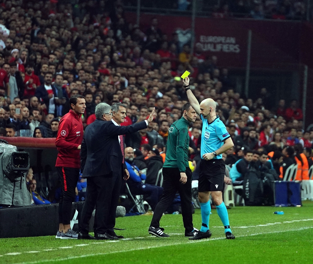 Euro 2020 Elemeleri H Grubu 9. maçında Türkiye, İzlanda’yı konuk ederken, mücadelenin 56. dakikasında A Milli Takım Teknik Direktörü Şenol Güneş sarı kart gördü. Bir pozisyon sonrasında verilen karara sinirlenen ve itiraz eden deneyimli teknik adam, karşılaşmanın hakemi Anthony Taylor tarafından sarı kartla cezalandırıldı.