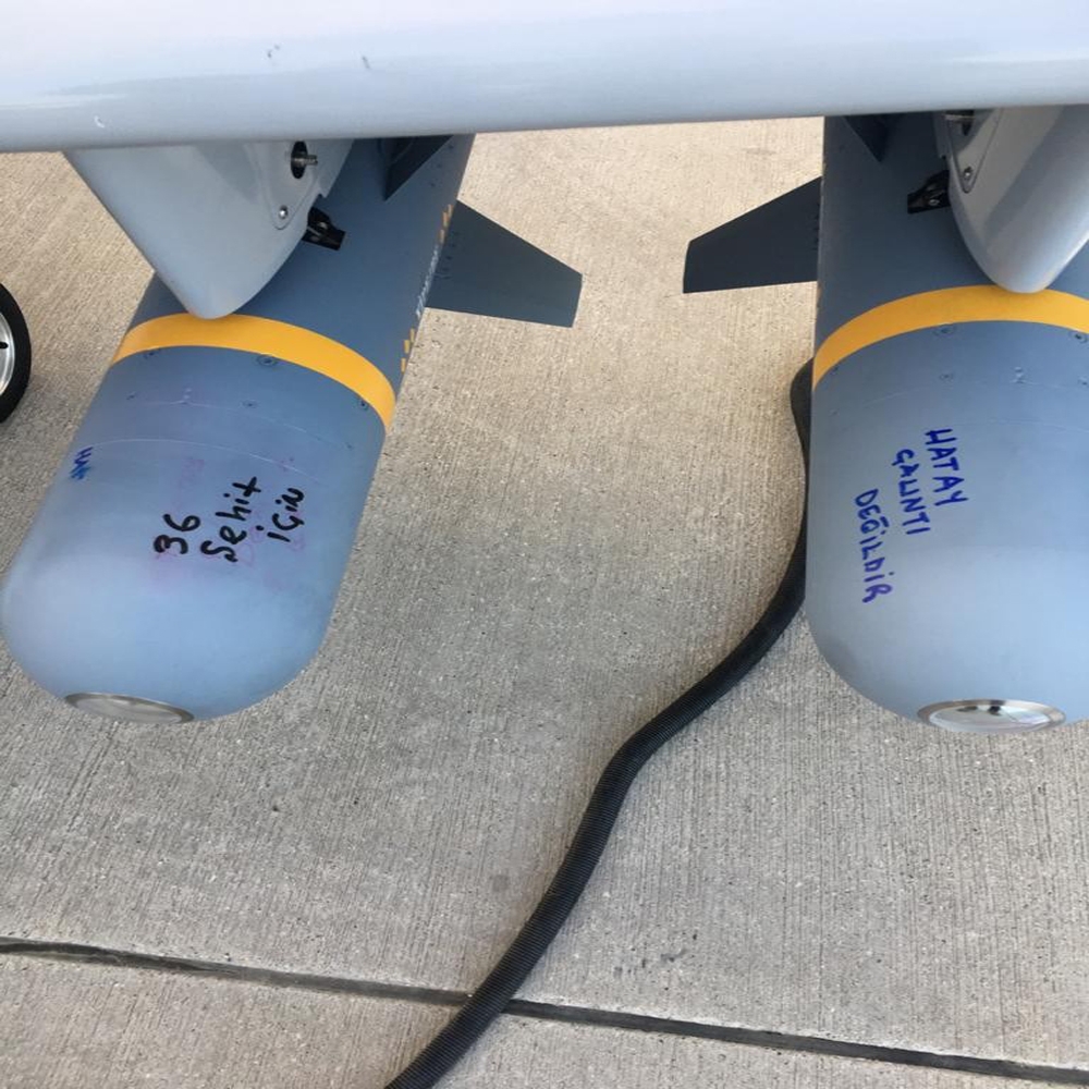Suriye’ye düzenlenen “Bahar Kalkanı ”operasyonunda Silahlı İnsansız Hava Araçları (SİHA) Suriye’de kalleşçe saldırılarda şehit düşen askerlerimiz için kalktı. SİHA mühimmatlarının bir tarafında şehitlerimizin sayısı yazarken diğer tarafında ise “Hatay çalındı” haberine itafen “Hatay çalıntı değildir” mesajı yer aldı.