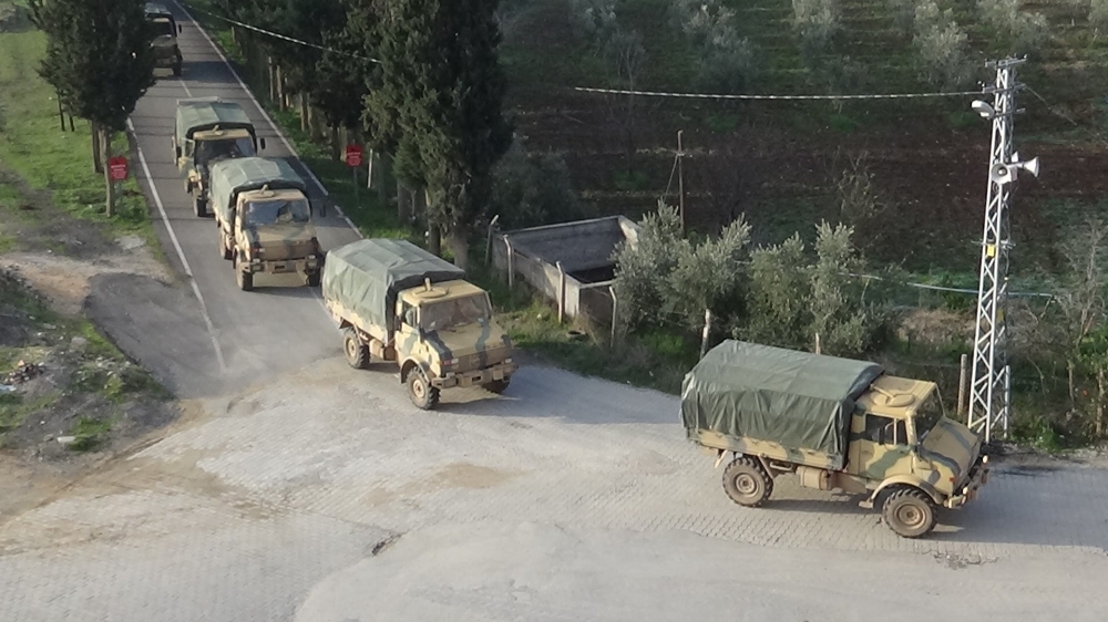 Türkiye’nin çeşitli birliklerinden gönderilen mühimmatları taşıyan zırhlı araçlardan oluşan konvoy, Hatay’ın Kırıkhan ilçesinden geniş güvenlik önlemleri altından geçerek Reyhanlı ilçesi sınır hattına gitti.