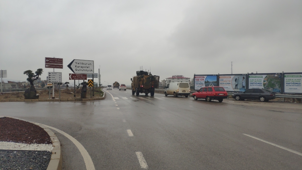 Suriye sınırındaki birliklere takviye olarak gönderilen zırhlı personel taşıyıcılardan oluşan askeri konvoy, Hatay sınırına doğru hareket etti. Yaklaşık 8 araçlık konvoyda Sağlık Bakanlığına ait bir ambulans da yer aldı.