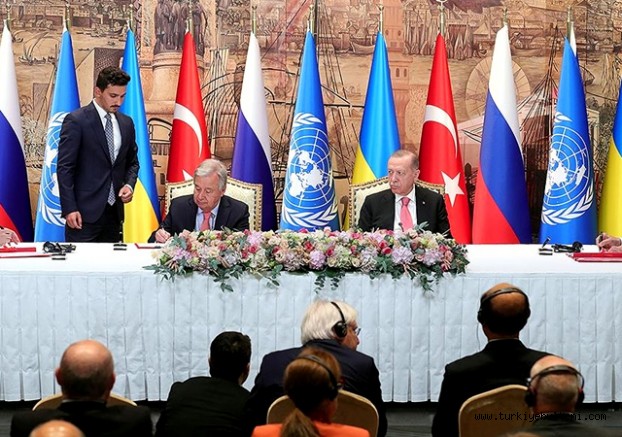 Öncesinde söz alan Guterres ise, Tahıl Sevkiyatı Anlaşması'nın imzalanmasından dolayı duyduğu mutluluğu dile getirerek, "Bugün Karadeniz'de rahatlama işareti ve dünyanın her zamankinden daha fazla ihtiyaç duyduğu bir umut ışığı var" dedi.