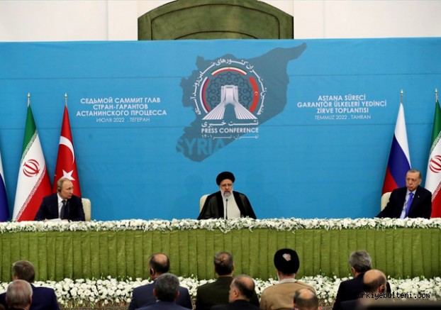 Dünyanın gözünü çevirdiği Tahran'daki üçlü kritik zirve sona erdi. Zirvenin ardından Cumhurbaşkanı Recep Tayyip Erdoğan, Rusya Devlet Başkanı Vladimir Putin ve İran Cumhurbaşkanı İbrahim Reisi toplantı sonrası mutabakata varılan noktalar ve zirvede konuşulan konular hakkında açıklamalarda bulundu. Çok konuşulan kritik zirve dünya basınında da geniş yer buldu.