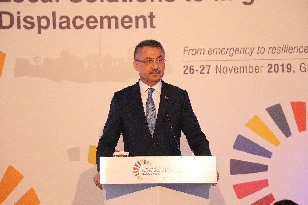 Cumhurbaşkanı Yardımcısı Fuat Oktay, Gaziantep’te bir otelde düzenlenen ’Göç ve Yerinden Edilmeye Yönelik Yerel Çözümler Uluslararası Forumu’na katıldı. Programda konuşan Oktay, Suriye’de çözüm isteyen bütün ülkelerin güvenli bölgeye destek vermesi gerektiğinin altını çizerek, Suriye’de oluşturulan güvenli bölgeye yaklaşık 370 bin kişinin geri döndüğünü kaydetti. Barış Pınarı Harekatı’yla oluşturulan güvenli bölgeye 1 milyon kişinin daha dönmesinin hedeflendiğini belirten Oktay, şunları kaydetti: