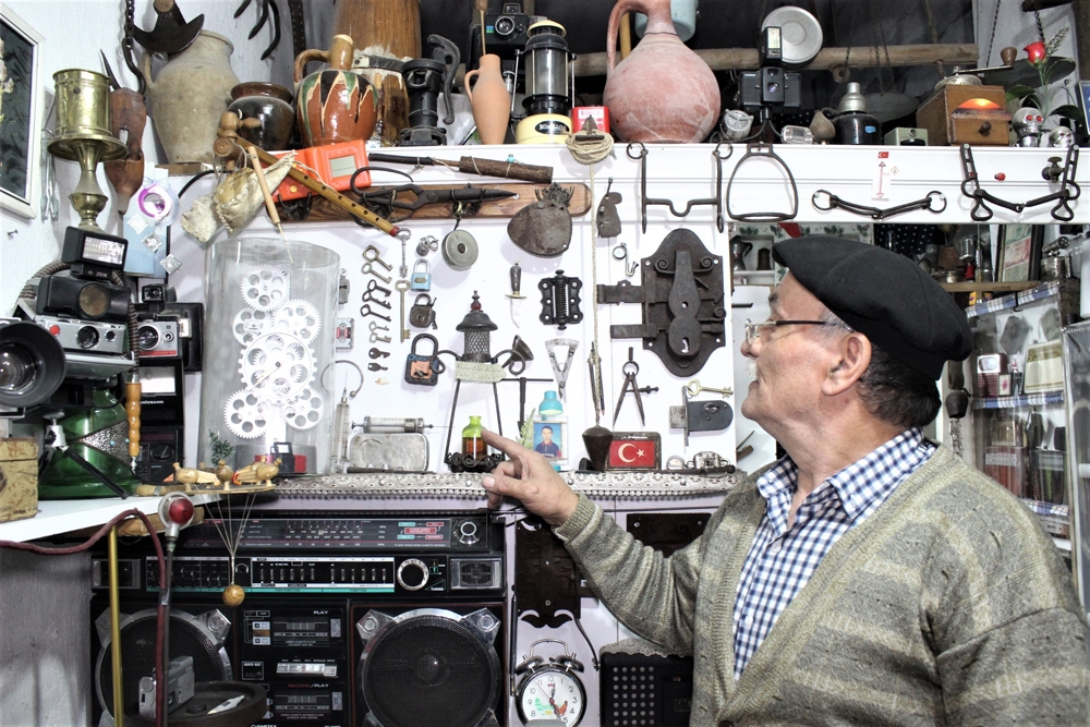 Terziliği 11 yaşındayken Makedonya’da öğrendiğini ifade eden Hakkı Demir, "50 yıldır terzilik yapıyorum. 1969 yılında Türkiye’ye geldik. Bursa’da 50 yıldır terzilik yapıyorum. Antika eşyalara ayrı bir merakım vardı 15 yıl önce toplamaya başladım. Bursa’da her pazar günü kurulan hurda pazarına giderek burada bende olmayan antika eşyaları toplayıp dükkanımda teşhir ediyorum. Gelen müşteriler çok şaşırıyor. Burada uzun vakit geçiriyorlar. Sadece burada sergilediğim antikaları görmek için gelen insanlar da var resim çekinip paylaşıyorlar. Dükkanımda 5 bin tane antika eşya var. Ölene kadar toplamaya devam edeceğim" dedi.
