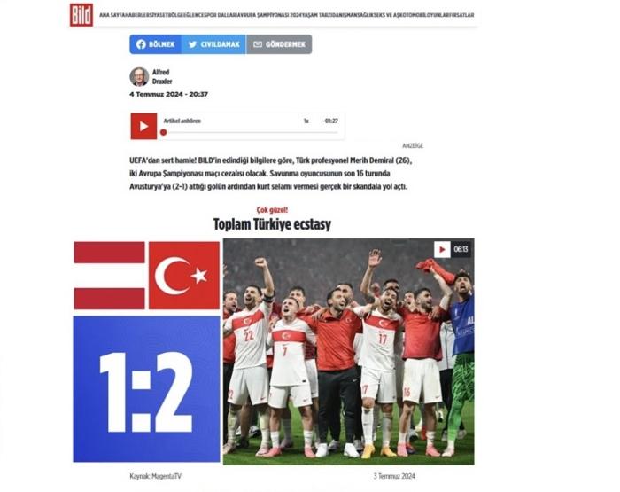 EURO 2024 son 16 turunda A Milli Takım, Avusturya'yı 2-1 mağlup ederek, çeyrek finale yükselmişti. Avusturya karşısında iki gol kaydeden Merih Demiral, bozkurt işareti yapmıştı. Daha sonra UEFA, "uygunsuz davranışlarda bulunduğu iddiasıyla" milli yıldıza soruşturma açmıştı.