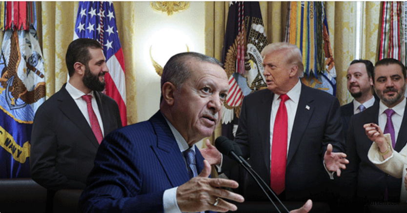 Suriye'deki siyasi sürecin gelişimine atıfta bulunan Trump, Türkiye'nin rolüne, "Kendisi (Şara), büyük bir lider olan Cumhurbaşkanı (Recep Tayyip) Erdoğan ile çok iyi anlaşıyor. Erdoğan büyük bir lider. Erdoğan, Suriye'de olanları çok destekliyor." ifadeleriyle atıf yaptı. Trump, görüşmesinin ikili ve bölgesel meselelerin çözümünde önemli bir dönemeç olduğuna işaret ederek, şunları kaydetti: "Suriye Cumhurbaşkanı çok güçlü bir lider. Çok zor bir coğrafyadan geliyor ve güçlü bir adam. Suriye'nin yeni Cumhurbaşkanı ile iyi anlaşıyorum. Onların başarılı olması için elimizden gelen her şeyi yapacağız, çünkü burası Orta Doğu'nun bir parçası." Orta Doğu'da uzun zaman sonra ilk kez barışın sağlandığını savunan Trump, Suriye'nin başarılı olmasının Ahmed Şara yönetimiyle mümkün olacağına inandığını ifade etti.