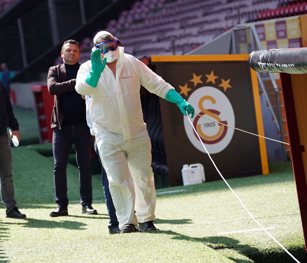 Süper Lig’in 26. haftasında yarın oynanacak olan Galatasaray - Beşiktaş derbi müsabakası öncesinde Türk Telekom Stadı’nda korona virüsüne karşı tedbirler arttırıldı. İstanbul Büyükşehir Belediyesi ekipleri stada gelerek, ilaçlama çalışması gerçekleştirdi. Stadyumda ilk olarak yedek kulübelerini ilaçlayan ekipler, daha sonra da soyunma odaları başta olmak üzere, futbolcuların kullanacağı iç kısımları dezenfekte etti.